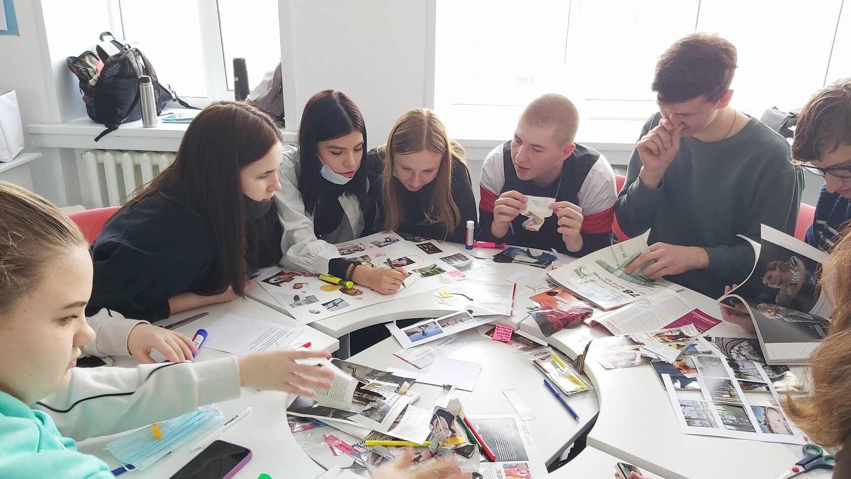 Участники проектной игры, работая в группах, обозначили на карте улицы проблемы и потенциал территории, а затем выполнили коллаж-настроение на одну из тем, посвященных организации пространства и созданию желаемой атмосферы на ул. Горького.